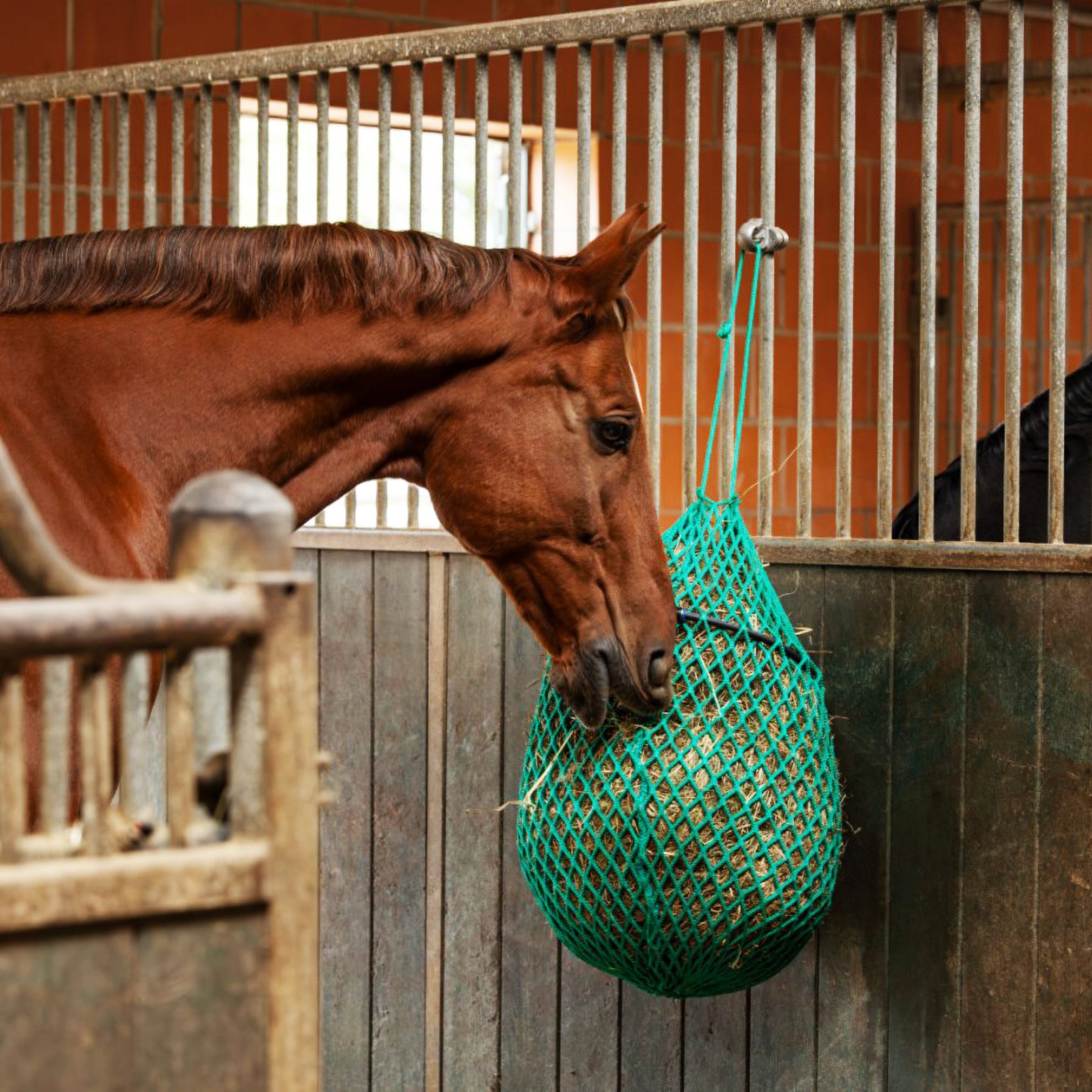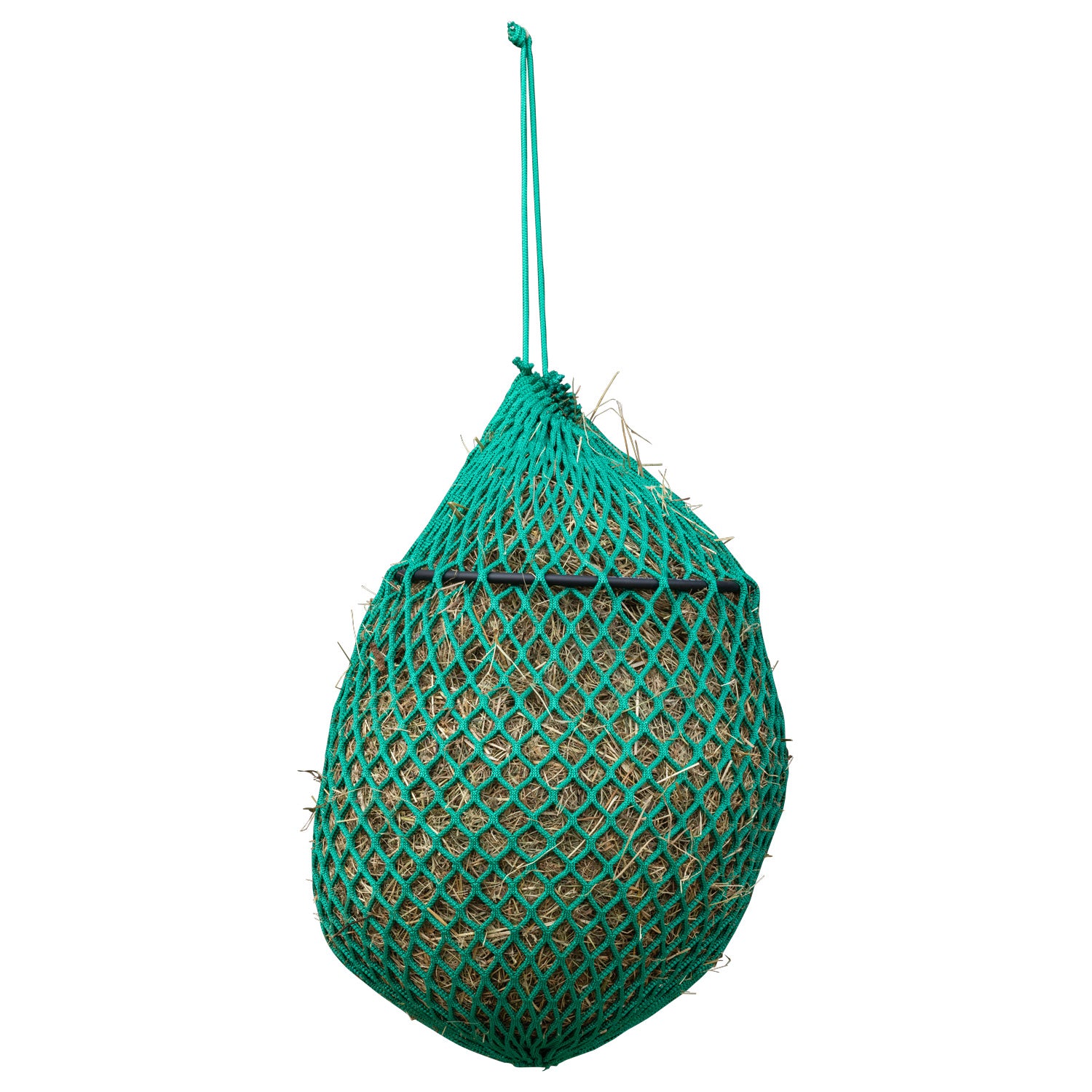 Das Heunetz hat stabile Gurte mit Karabinern an den Seiten für eine einfache Befestigung. Am Ende und in der Mitte befinden sich Versteifungsringe für eine leichte und schnelle Befüllung. Das Öffnen des Heutunnels erfolgt über einen Reißverschluss und erleichtert somit nochmals die Befüllung mit Heu.