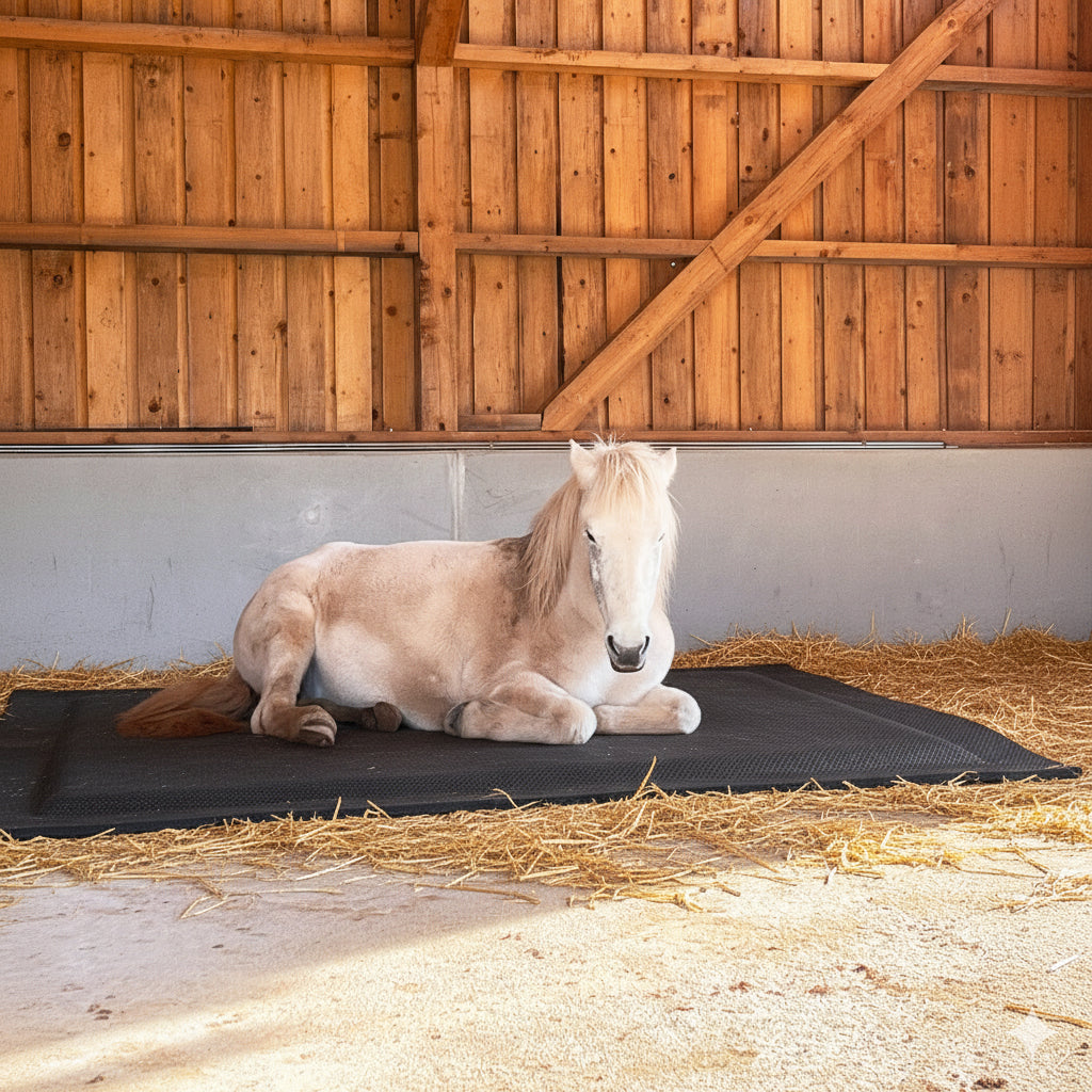 Der hochwertige Schaumstoffkern im Inneren sorgt für einen außergewöhnlich weichen, trockenen und rutschfesten Liege- und Schlafplatz. Die weiche Polsterung bietet dem Pferd höchsten Liegekomfort und unterstützt ein entspanntes Aufstehen und Hinlegen – selbst bei wenig oder ganz ohne Einstreu.