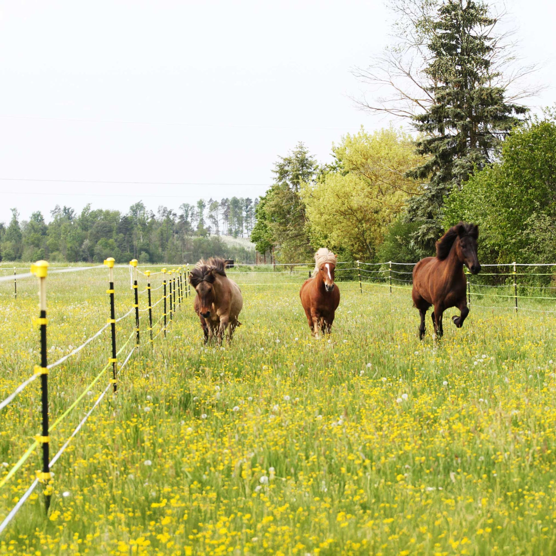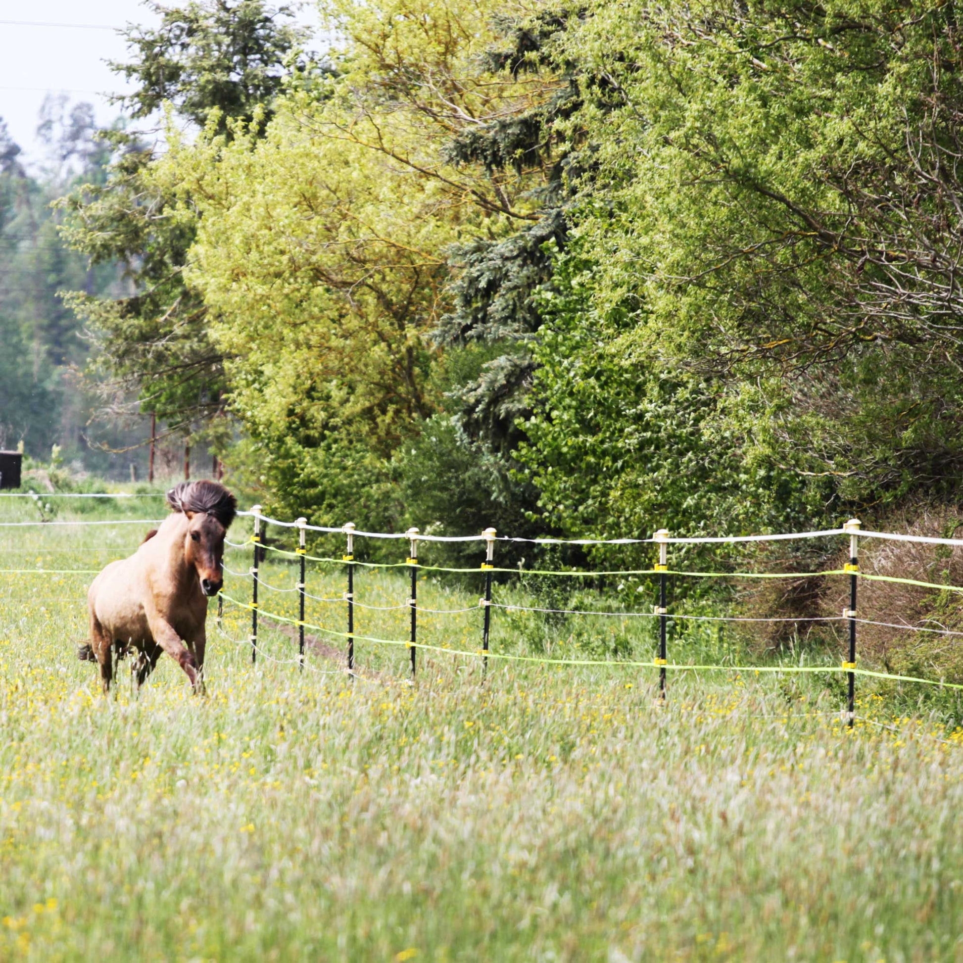 - Pfosten-Abstand für Seil ca. 5- 6m und für Bänder ca. 3-5 m