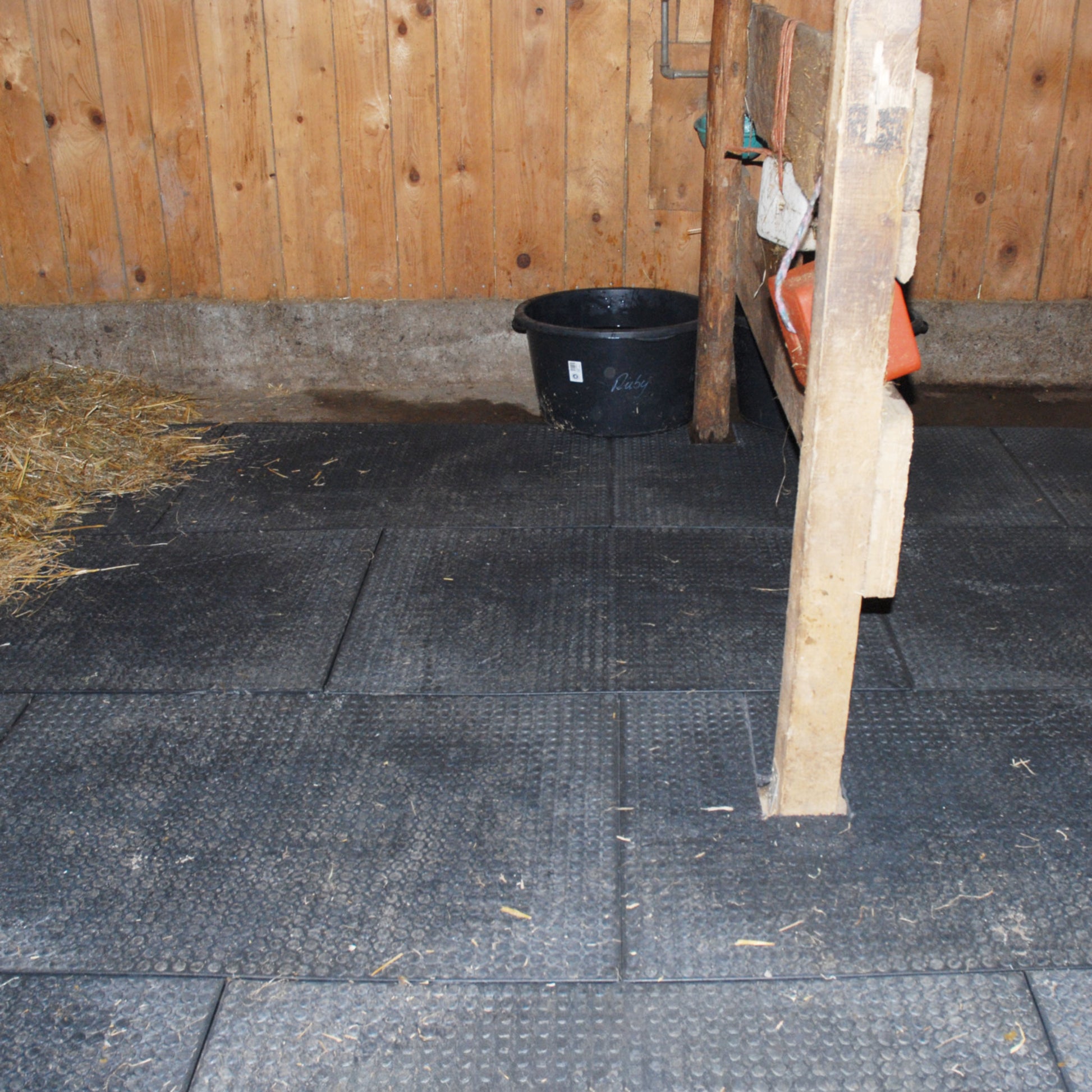 Im Vergleich zu Matten aus Gummigranulat oder Vollgummimatten sind sie robuster, aufgrund des härteren Materials aber auch weniger rutschfest als der weichere Gummi. Gerade im Boxenbereich wird Einstreu benötigt, um die Rutschfestigkeit bei Nässe zu gewährleisten.