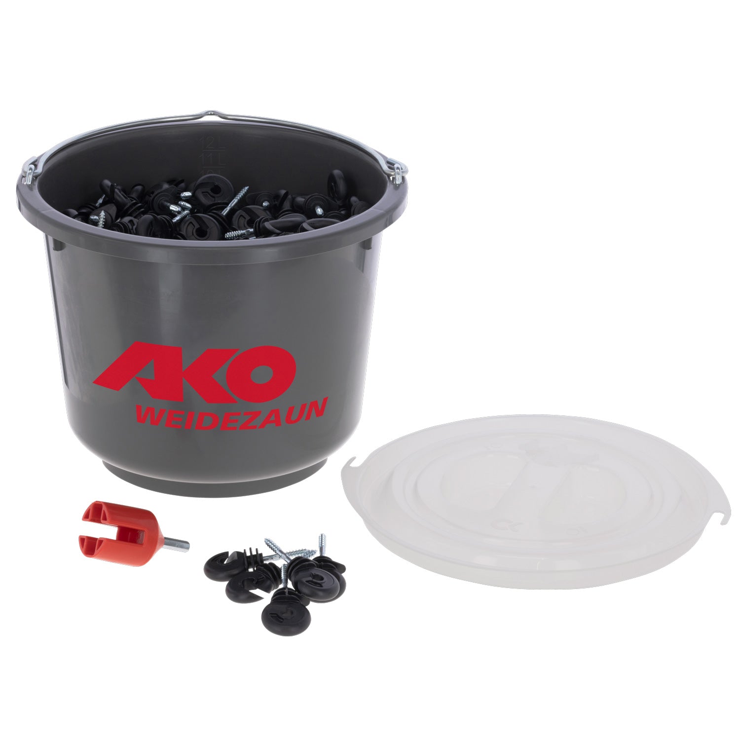 Ringisolator mit durchgehender Stütze. 250 Stück im Eimer inkl. Einschraubhilfe.