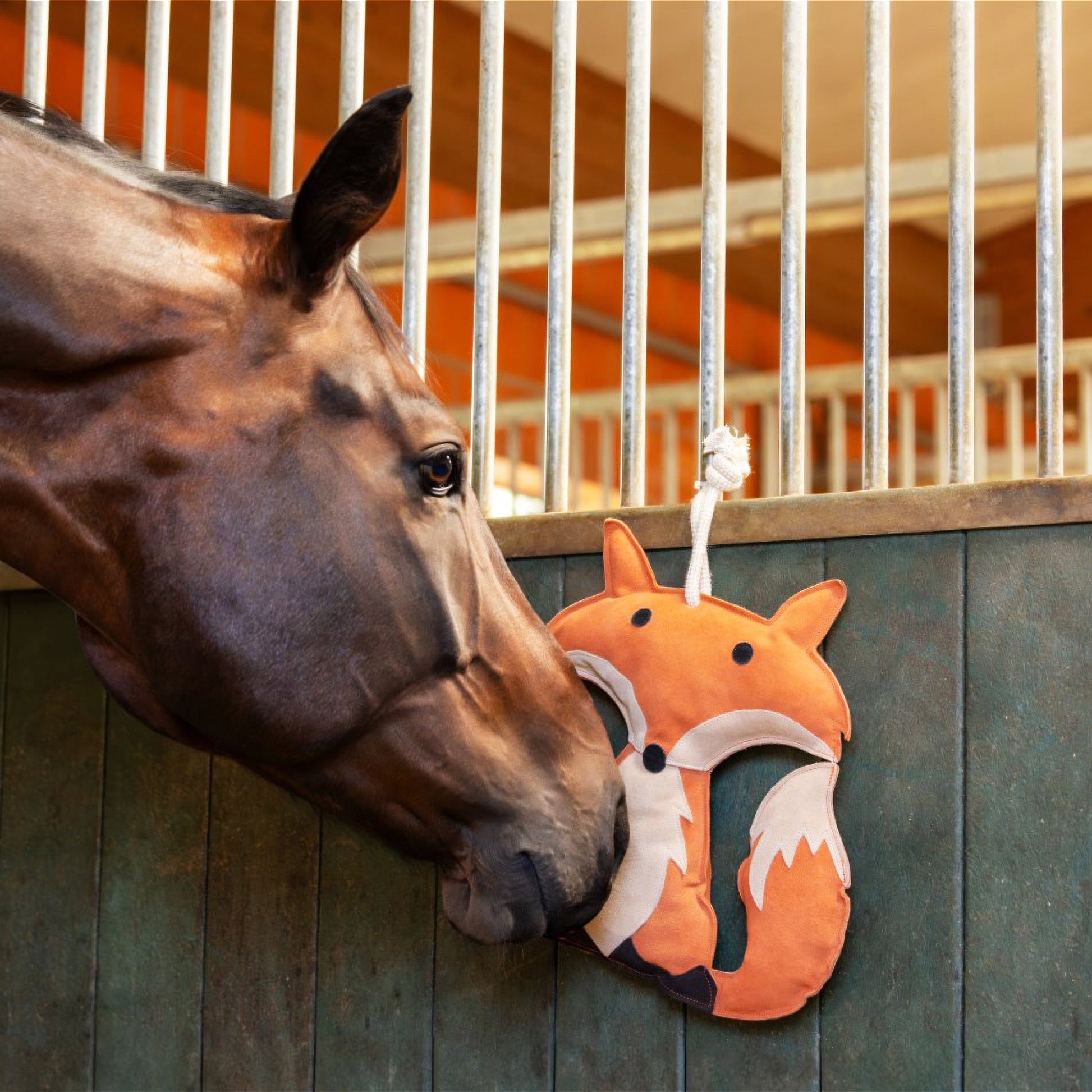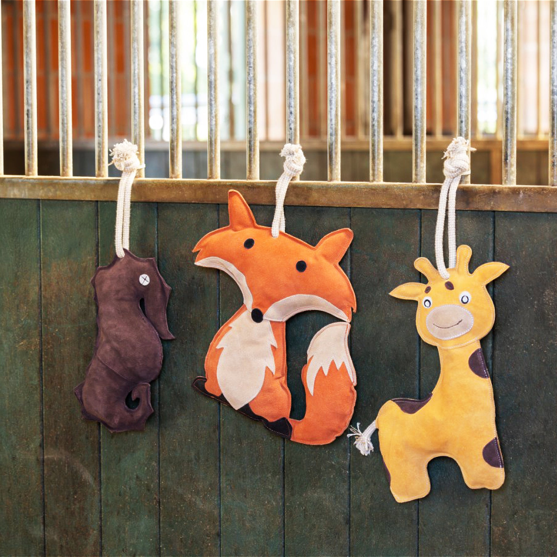 Das mit Naturfasern und einer Plastikflasche gefüllte Pferdespielzeug mit Wildlederbezug ist eine gute Ablenkung für Pferde in der Box oder in Zeiten eingeschränkter Bewegung. Es ist hervorragend als Beschäftigungsmaterial für Fohlen geeignet.