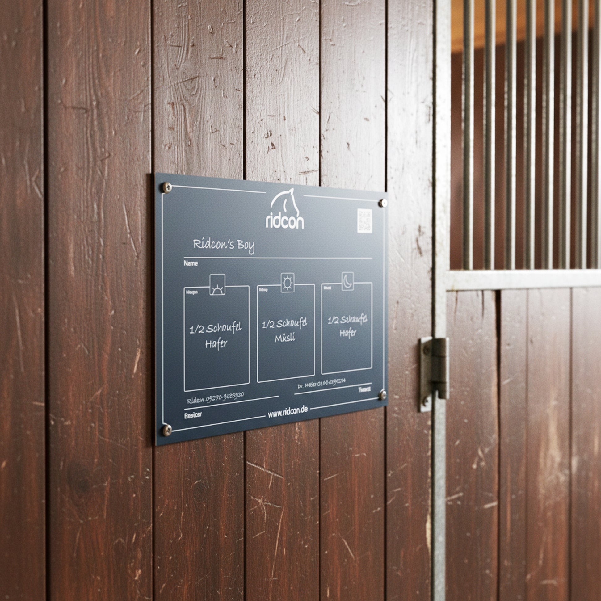 Ridcon Futter-Stalltafel zur Befestigung an der Box. Für Informationen zur Fütterung.