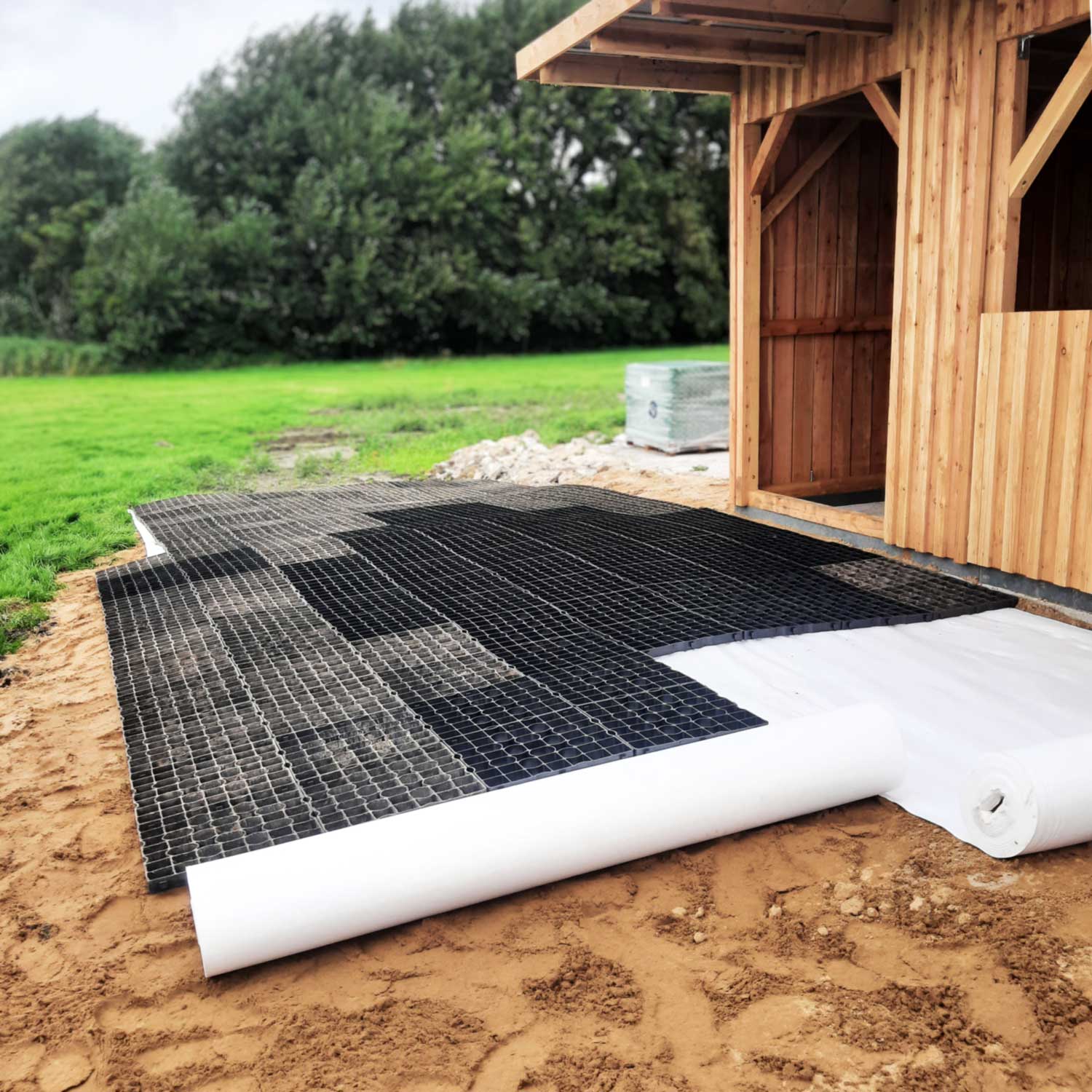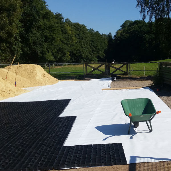 Vlies für Paddock- und Reitplatzbau zur Stabilisierung bei einem Aufbau mit keinem oder wenig Unterbau. 150g/m².