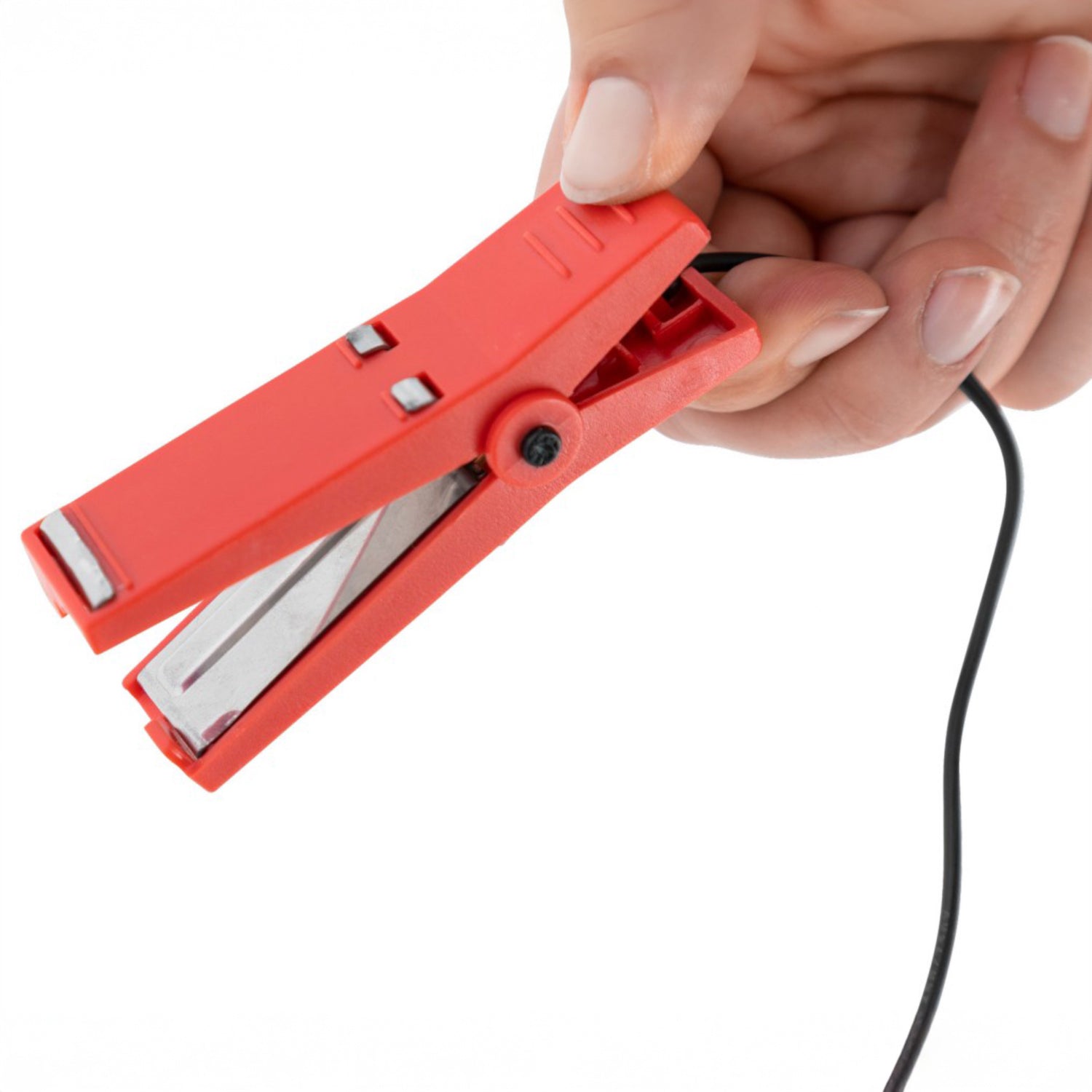 - angepasste Kontaktflächen der Krokodilklemmen sorgen für die optimale Kontaktierung von Bändern mit 10-40 mm Breite